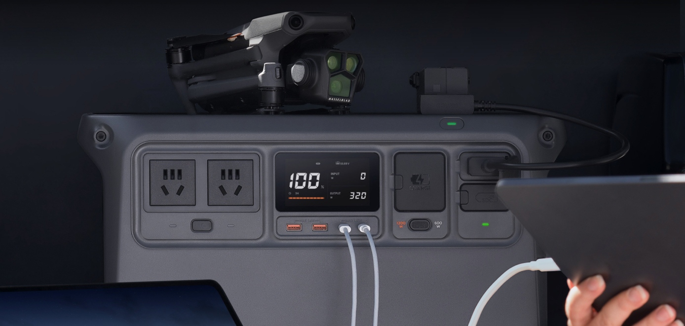 Он поддерживает режим быстрой зарядки мощностью 1200 Вт и обычный режим мощностью 600 Вт от сети. В режиме быстрой зарядки мощностью 1200 Вт зарядка DJI Power 1000 от 0% до 80% занимает всего 50 минут, а полностью зарядить его можно за 70 минут.4].